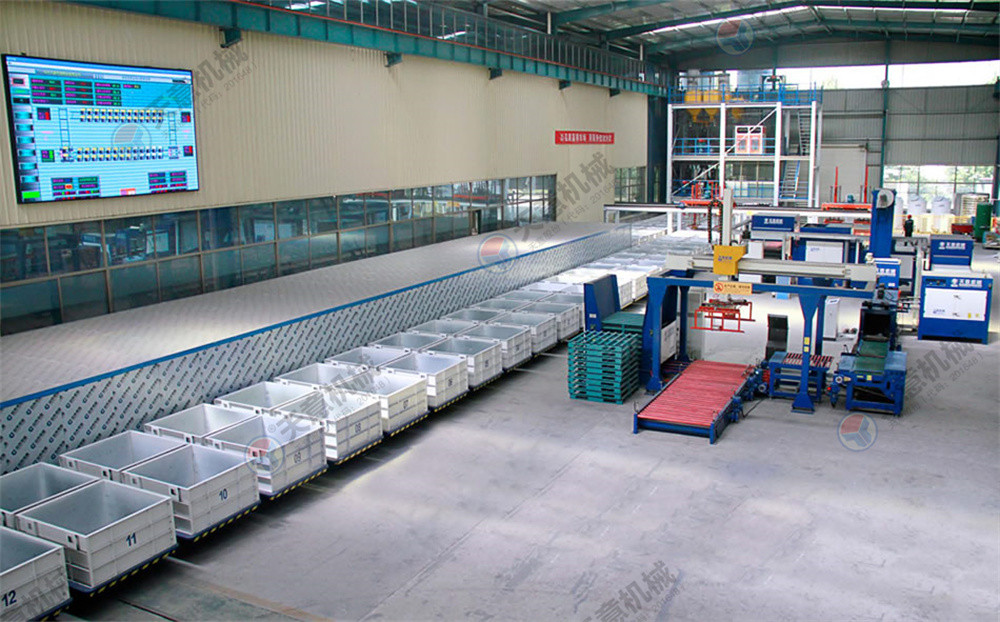 水泥發(fā)泡保溫板生產(chǎn)線是我公司順應(yīng)市場(chǎng)需求新研發(fā)的成套設(shè)備。該生產(chǎn)線將工藝流程劃分為攪拌系統(tǒng)、循環(huán)澆注系統(tǒng)、脫模系統(tǒng)、切割系統(tǒng)、包裝系統(tǒng)、儲(chǔ)存系統(tǒng)、廢料破碎回收系統(tǒng),全套生產(chǎn)線可實(shí)現(xiàn)班產(chǎn)量400—600m3,全部利用自動(dòng)控制生產(chǎn)流程,所需人工9—12人,大大降低生產(chǎn)成本.